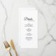 Esse simples cardápio de bebida de caligrafia branca e preta traz um luxo elegante, mas moderno, a uma recepção de casamento minimalista e mais tradicional ou formal. A caligrafia casual permite um sentimento antigo, enquanto o design neutro de classe pode ser combinado com quaisquer aspectos únicos da celebração do casamento.
