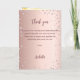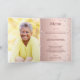 Um fundo gradiente de dourado rosa falso com diamantes cor-de-rosa. O nome é escrito com uma fonte moderna de letra manuscrita colorida de dourado rosa escuro. O número 70 é escrito com uma fonte estilo balão, manuscrita. Texto de boas-vindas, foto, menu e um agradecimento no verso.