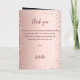 Um fundo gradiente em dourado rosa falso com diamantes rosa. O nome é escrito com uma fonte moderna de letra à mão colorida em dourado rosa escuro. O número 90 é escrito com uma fonte estilo balão, cursiva. Texto de boas-vindas, foto, cardápio e um agradecimento no verso.