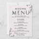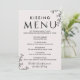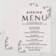 Este cardápio de beijos de tipografia floral é perfeito para uma elegante recepção de casamento. A design romântica apresenta uma simples inscrição decorada com flores, uma cobertura botânica e um sutil fundo de pincel.