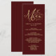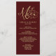 Menu de Caligrafia Dourada Elegante Borgonha