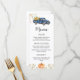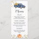Menu de caminhão azul, menu imprimível de abóbora