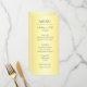 Cartão de Rack do Menu de Casamento Amarelo e Beige Clássico Elegante.