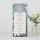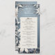 Menu de casamento no inverno romântico, com folhagem de inverno nítida e flores em fundo azul gelado.
