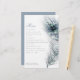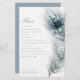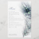 Elegante Peacock Feather Blue Wedding Menu. Um preço orçamentário de 5,5" x 8,5", em uma elegante estoque LINEN de 110 lb - para uma sensação de luxo pelo valor do excelente, isso é perfeito para menus, além de convites e programas, etc. Este alternativo de tamanho de orçamento também está disponível em outras opções de papel. O estoque do cartão SEMI-GLOSS de 110 lb tem aproximadamente a mesma espessura do cartão postal, portanto também funciona bem para convites. O papel FELT de 100 lbs é colorido por buff, NÃO branco, então adiciona um toque rústico. O estoque de papel MATTE de 80 lb é branco brilhante, para impressão nítida, excelente para seus menus e programas, enquanto o papel SATIN de 80 lb é fino e leve, ideal para gabinetes. NOTE QUE OS ENVELOPES OPCIONAIS SÃO UM POUCO MAIORES EM TAMANHO A 6,75" x 9" aproximadamente. Um plano de fundo azul empoeirado coordenado está no verso.