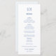Janto Whimsical Setting Doodle, menu de casamento. Recursos, Tipografia Azul Francesa com padrão de faixa azul clara de apoio.