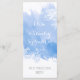 Um cartão de cardápio azul-azul de coral abstrato com cor aquamarina moderna, contendo um talão de tinta aquosa pintado manualmente com textura em tons de azul-aquamarino, recife de coral em branco e texto em branco e cinza. Este elegante e na moda exótico design de casamento casual é um modelo perfeito para o seu casamento de verão no destino da praia costeira.