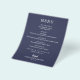 Um documento de valor de barato de 80 lb. de peso, essas pequenas placas de menu janto azul de safira apresentam suas opções de comida em letras brancas quentes. Perfeito para uma recepção de casamento moderna, janto de ensaio de casamento, festa de aniversário, ou qualquer evento especial com um janto sentado. *Medidas de 4,5" x 5,6" (ou escolha entre 2 outros tamanhos) O Serviço de Design ao Vivo pode ajudá-lo com o layout, o tamanho ou o ajuste da cor, se necessário.