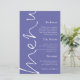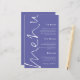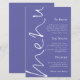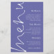 Menu de Casamento Azul do Script de Orçamento. Um preço orçamentário de 5,5" x 8,5", em uma elegante estoque LINEN de 110 lb - para uma sensação de luxo pelo valor do excelente, isso é perfeito para menus, além de convites e programas, etc. Este alternativo de tamanho de orçamento também está disponível em outras opções de papel. O estoque do cartão SEMI-GLOSS de 110 lb tem aproximadamente a mesma espessura do cartão postal, portanto também funciona bem para convites. O papel FELT de 100 lbs é colorido por buff, NÃO branco, então adiciona um toque rústico. O estoque de papel MATTE de 80 lb é branco brilhante, para impressão nítida, excelente para seus menus e programas, enquanto o papel SATIN de 80 lb é fino e leve, ideal para gabinetes. Este design moderno no violeta azul de periwinkle tem Menu em um script de conjunto elegante rodando no lado esquerdo e o resto do texto está alinhado à direita que você pode personalizar facilmente, assim como seus nomes e data de casamento no verso. As cores do texto e do plano de fundo em ambos os lados podem ser alteradas para qualquer uma de suas opções por meio da opção personalizar mais.