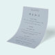 Menu de Casamento Azul Dusty com Tipografia Simples. Um alternativo PAPER (não cartão) de valor de excelente SEM ENVELOPES a um preço orçamentário. Você também pode alterar o estilo e as cores da fonte e as cores de fundo na frente e na parte traseira, se desejar, por meio da opção Clique para Personalizar mais.