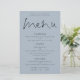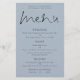 Menu de Casamento Azul Dusty do Script Elegante de