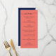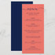 Elegante cardápio de casamento azul e coral com marinho moderno. Personalizar facilmente online. Itens correspondentes disponíveis para complementar este menu de casamento minimalista.