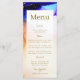 Um elegante menu moderno decorado com uma espantosa trabalho de arte de tinta azul-safira e abstrato cor de laranja impresso sobre fundo branco. Edite facilmente os itens de menu. Se o tamanho ou as margens da fonte precisarem de ajuste, use a ferramenta design para alterar a caixa delimitadora de texto ou o tamanho da fonte para adequá-lo melhor ao seu layout. A parte traseira da placa é branca. Se você quiser outra cor, digite a ferramenta design e selecione outra cor de fundo para a parte traseira do menu. Se você precisar de ajuda, ficaremos felizes em ajudar; nos mande mensagens no Zazzle Chat. Menu de Casamento Azul e Laranja do Apphire Deluxe.