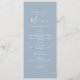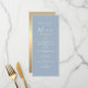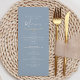 Elevem a vossa recepção com o nosso mendigo de casamento azul, empoeirado, uma mistura perfeita de simplicidade e elegância. Com um coração de corda de ouro-chico, este menu exude sofisticação moderna e charme de eterno. Ideal para casais que buscam um toque refinado, este menu adiciona um toque de elegância à sua experiência de jantar. Aproveite a beleza da simplicidade com este requintado acréscimo ao dia do seu casamento, prometendo uma celebração cheia de amor e estilo.