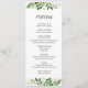 Se o seu tema incluir verde rústico ou boêmico, este menu de casamento é o complemento perfeito para as suas mesas. Um longo formato elegante de tamanho de chá, este menu ficará bem em cada placa individual e você poderá adicionar um obrigado ou uma mensagem de boas-vindas aos seus convidados no verso.