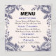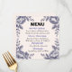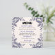 Adicione um toque de sofisticação clássica à sua recepção de casamento com este cardápio único de casamento botânico. O design apresenta uma elegante gravura de flores e folhagem, ao estilo vintage, em azul rico marinho, enquadrada sobre fundo macio. Esse olhar de eterno é perfeito para eventos formais e rústicos, oferecendo uma bela mistura de arte tradicional e estilo moderno. O texto do menu é facilmente personalizável, permitindo que você liste seus pratos, bebidas e mensagens pessoais personalizados. Esta design também faz parte de uma suíte de papelaria correspondente, para que você possa completar o seu tema de casamento com convites coordenados e outros aspectos essenciais.
