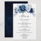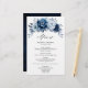 Elegante, tema azul/Marinho, menu de casamento com buquê elegante de azul Dusty, Marinho, botões de flores rosa e folhas de eucalipto azuis. Entre em contato comigo para obter ajuda sobre a personalização ou se você precisar de outro produto com este design.