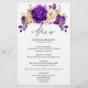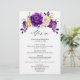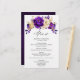 Elegante menu de casamento do tema ouro roxo real com elegante buquê de roxo real, índigo, ouro, flores rosa amarelas e folhas de eucalipto. Entre em contato comigo para obter ajuda sobre a personalização ou se você precisar de outro produto com este design.