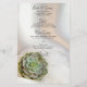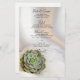 Personalize o bonito Menu de Casamento Verde em Branco com os detalhes da refeição que você servirá na sua festa de jardim no almoço de chá de panela, poste o brunch de casamento ou o janto de recepção de casamentos, adicionando a salada ou o primeiro curso, a entrada ou o segundo curso e a sobremesa ou o terceiro curso. Personalize-o com os nomes da noiva e noiva, local de evento e data. Este elegante menu de casamento natural personalizado apresenta uma fotografia floral pintada digitalmente de uma planta suculenta verde com um véu branco e fundo branco de cebola.