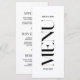 Este Menu Nupcial preto e branco será excelente para o casamento moderno. Apresenta letras em negrito no lado frontal da placa. O menu é dobrado e tem uma lista editável de pratos no verso. Você pode personalizar este menu com os nomes e a data do evento. Você também pode alterar a cor do plano de fundo, as fontes e as cores da fonte, se necessário, basta clicar em "Personalizar mais".
