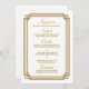 Estes cartões de menu apresentam uma paleta de cores branca e dourada, um quadro geométrico e outros detalhes estilísticos, todos inspirados na Arte Deco e nos vinte e poucos anos ruidosos. Você pode personalizar os campos de texto de exemplo de acordo com o seu gosto.