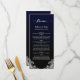 Um elegante cardápio de casamento preto e azul.