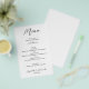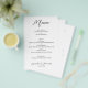 Um excelente valor, um menu de janto branco de 5,5" x 8,5" é impresso em um papel colchete não revestido de 80 lb mais fino e apresenta suas opções de comida em caracteres quicos. Perfeito para uma recepção de casamento moderna, janto de ensaio de casamento, festa de aniversário ou qualquer evento especial com um janto sentado. Mais DESIGNS e cores em nossa loja. O Serviço de Design ao Vivo pode ajudá-lo com o layout do seu design, as fontes ou ajustar cores, se necessário.