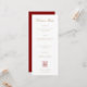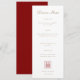 Um design moderno com o símbolo da Felicidade Dupla em vermelho com a elegante tipografia em ouro. Este cartão de menu elegante pode ser personalizado para grupos de ensaio/recepção/bebidas/janto, simplesmente alterando o cabeçalho.