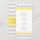 Elegante menu de janto de casamento em elegante amarelo-limão brilhante, cinza e padrão retrô branco de chevron zigzags, personalizável com seus detalhes de janto, disponível em uma grande variedade de produtos de casamento correspondentes.