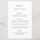 Menu de casamento elegante com um layout simples e clássico com o título em uma fonte serif moderna.