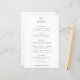 Menu clássico de casamento preto e branco com um simples design com um toque moderno e minimalista. A palavra "o" no título está em uma tipografia de script elegante e o restante texto está em uma fonte serif tradicional.