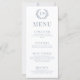 Melhore o encanto da sua recepção de casamento com esses cartões de cardápio azuis sofisticados e na moda. Decorado com delicadas flores azuis e apresentando uma coroa floral eterno embelezada com a noiva e o monograma do noivo.