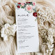 Menu de Casamento Cloroso Floral Moderno Blush Gre