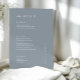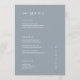 Estes elegantes e modernos cartões de cardápio de casamento ou cartões de menu de ensaio jantam apresentam um simples fundo azul empoeirado e design de texto branco. Adicione suas iniciais ou monograma para torná-las completamente suas.