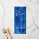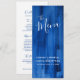 Linda tontura azul de safira formando pintada menu de janto de casamento ou menu de evento especial. Edite este menu de 4 cursos com suas próprias palavras. Simples mas moderno menu de arte azul de safira. Ideal para um rico casamento azul ou evento de 45 anos de casamento de safira. © Design e pintura abstrato original por www.mylittleedenweddings.com em zazzle.