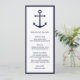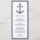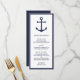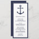 Marinho Náutico moderno Cartão de Menu de Casamento de Âncora Azul com marinho com ancoragem azul com detalhes do menu de casamento em marinho azul moderno sans serif em fundo branco com marinho azul fronteira. Perfeito para casamento temático náutico, casamento temático da praia e muito mais.