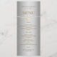 Simples, elegante, falso menu de casamento de folha de prata com corda de ouro romântica e roteiro de caligrafia moderno.
