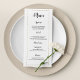 Esta caligrafia minimalista branca e dourada com uma linha dash dourada na fronteira do casamento Menu Convite. É perfeito para qualquer garota refinada e sofisticada ou qualquer pessoa. Este design é ideal para um evento de festa simples e elegante. Personalize este design com sua mensagem e informações personalizadas. Todas as designs são impressas.
