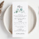 Felicite o seu elegante evento de casamento com este clássico cardápio verde de caligrafia de eucalipto. A design apresenta folhas verdes de eucalipto com água.