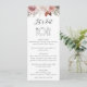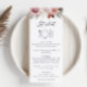 Felicite seu clássico evento de casamento com este cardápio de casamento da caligrafia floral de rosa de ouro rústico. A design apresenta relva pampas, burgundy, rosa e rosa dourada em buquês elegantes.