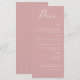 Cartão de janto ou casamento cor-de-rosa com borrão elegante. Design contemporâneo, simples e elegante com uma bela caligrafia escrita à mão. Cor de fundo frontal e traseira em rosa-pincelado. Capacidade de alterar as cores frontal e/ou de fundo selecionando "personalizar mais". Design disponível em várias opções de cores. Parte de nossa coleção "Produtos para Casamento e Eventos de Marinho Dusty" com uma variedade de produtos de coordenação disponíveis, incluindo cartões de planos de assentos e números de tabelas.
