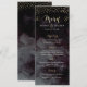 Design de caligrafia à mão e pontos de ouro glamourosos confetti sobre fundo de cor d'água preto escuro no céu escuro, efeito brilhante metálico de ouro, moderno, limpo e elegante, perfeito para casamento vintage ou casamento no inverno à noite. Personalize seu próprio cartão de menu e adicione um toque pessoal ao seu casamento! Veja todas as peças correspondentes nesta coleção abaixo.