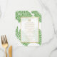 Cartões de cardápio elegantes, glamourosos e sofisticados para recém-casados com belas imagens impressas de samambaia em uma cor verde natural sobre fundo branco. No centro deste convite bonito estão os detalhes do menu rodeados por uma bonito imagem de borda brilhante do ouro. Este é um design moderno e moderno adequado para casamentos em qualquer estação, Primavera, Verão, outono ou inverno. Todo texto é totalmente personalizável. Se você quiser ajudar na personalização do seu produto, por favor, entre em contato comigo na minha loja e eu ficarei muito feliz em ajudá-lo.