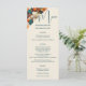 Menu de Casamento de Flores Tropicais Elegante. Celebre seu dia especial com este elegante e romântico menu de casamento com um design floral impressionante em um rico fundo laranja e lacrimogênio. Personalize com seus nomes, data do casamento e menu.