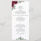Menu para celebração de casamento com nomes florais e caligraficos burgundy & greenery.