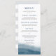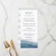 Coloque estas placas de menu elegantes em cada lugar, para obter um belo toque na configuração da recepção de casamento. O chic costeiro, design náutico apresenta cinza e marinho azul com seus nomes e data de casamento no topo, e um elemento de lavagem a aquarela no fundo em rico azul marinho. Coordena a nossa coleção de convites para o casamento das Ondas do Oceano — perfeita para a vossa praia ou casamento de Verão. Use os campos modelo para adicionar as informações do menu e clique em "Personalizar" para reposicionar os elementos, se necessário. Precisa de ajuda? Entre em contato comigo através do link "Perguntar a este Designer" nesta página.