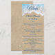 Este cardápio de casamento inspirado na praia está sobre um fundo de água azul, areia da praia, e estrelas, fazer perfeito para o casamento de praia, tropical ou destino. Este menu coordena-se perfeitamente com a Coleção de Casamentos de Ondas de Praia Azul. Esta versão do menu é impressa em papel branco de alta qualidade, de 110 lb, com espessura de 12,5 pt e acabamento semirbrilhante. Se forem necessários itens de coordenação adicionais, entre em contato conosco em prettyfancyinvites@gmail.com com o seu pedido.
