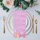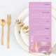 O Menu de Casamento de Arte Abstrato de Pastel rosa tem um toque perfeito do casamento pastel moderno e moderno. A abstrato apresenta uma mistura de cores coral, rosa e branco que é balanceada, não muito ousada nem clara complementando a tipografia branca e roxa. Com a tipografia moderna, ele cria um novo estilo além do casamento tradicional ou de um casamento típico.