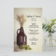 Personalize o Menu de Casamento Rústico de Café, Saltos e Cabra com os detalhes da refeição que você servirá no seu almoço de chá de panela de cerveja, poste o brunch de casamento ou o janto de recepção de casamentos, adicionando a salada ou o primeiro curso, a entrada ou o segundo curso e a sobremesa ou o terceiro curso. Personalize-o com os nomes da noiva e noiva, local de evento e data. Este carinhoso menu de casamento personalizado apresenta uma fotografia de um jarro de cerveja marrom, branco seco, salto verde seco e véu branco. Perfeito para o casal que servirá cervejas artesanatos ou microcervejas na reunião.