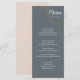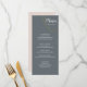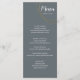 Anéis grandes e luxuosos decoram o seu menu de casamento mínimo, emprestando-lhes um acabamento sutilmente sofisticado. Cada curso é descrito abaixo em fontes formais contra um pano de fundo silenciado de tons legal ou terríveis. No verso, suas iniciais aparecem contra um bloco sólido de cor que complementa o esquema escolhido. Personalize-o com seus próprios detalhes. Para mais personalização, clique no link "Personalizar" e use as ferramentas avançadas de design do Zazzle.